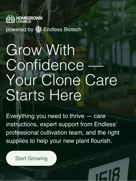 Your clone is backed by our Endless x Homegrown Quality Assurance. If your plant arrives in poor condition or doesn’t bounce back after following the acclimation steps, please contact Homegrown Customer Support for assistance or replacement options.